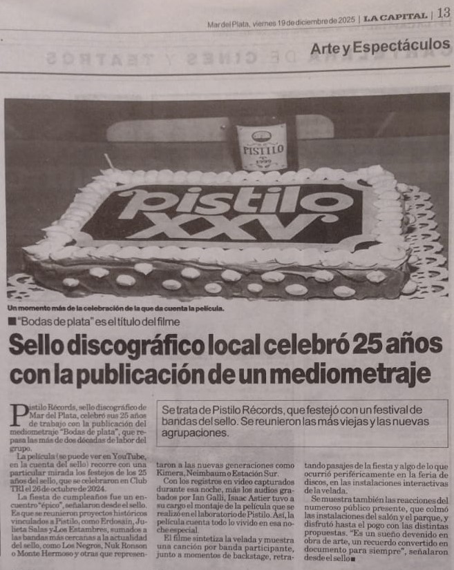 19/12/2025 NOTA SOBRE DEL FILM "BODAS DE PLATA" en la edición impresa del DIARIO LA CAPITAL de Mar del Plata |